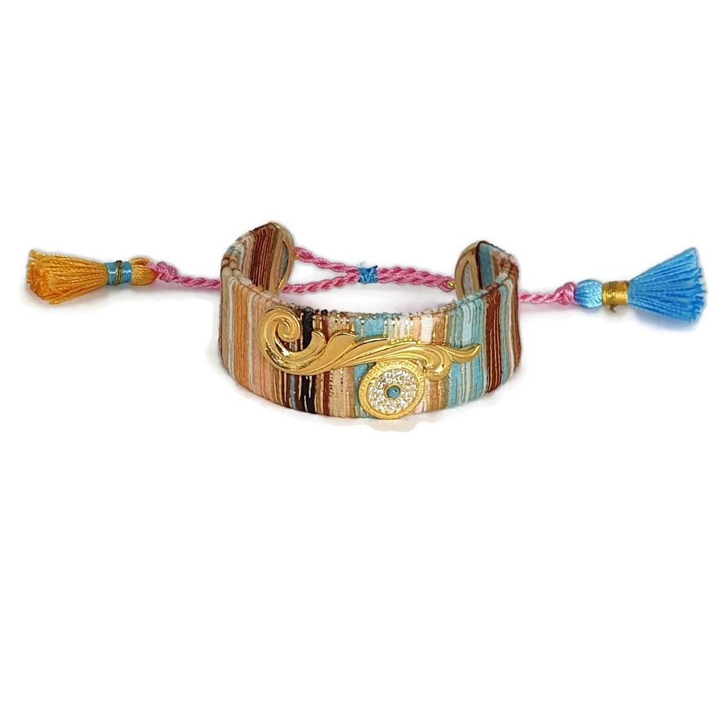 925 Sterling Silver 2cm Thickness Fabric BraceletFabric & Tassel Colors Will be Given Assorted