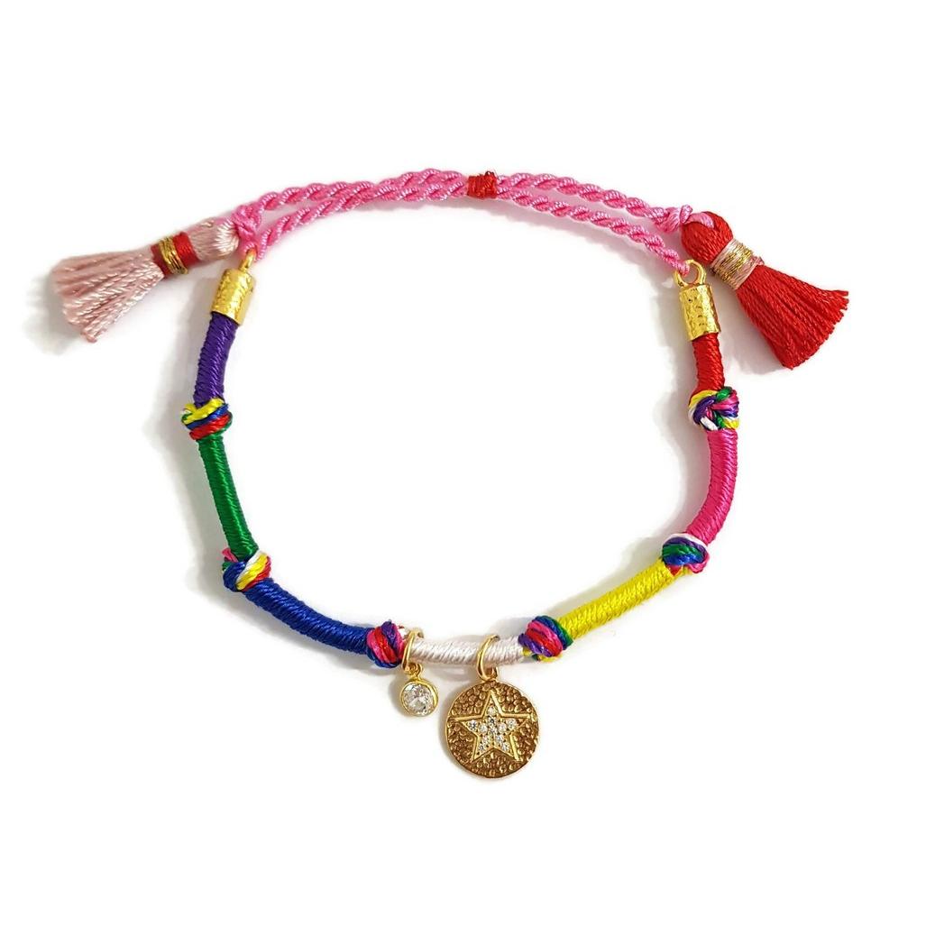 Silver Bracelet with MacromeFabric & Tassel Colors Will be Given Assorted