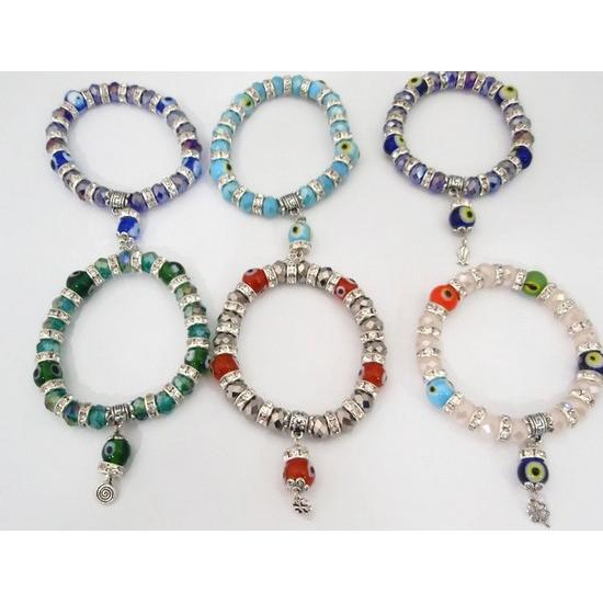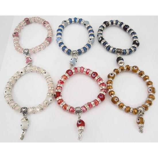 Glass Evil Eyes Bracelet with cubic Zirconia